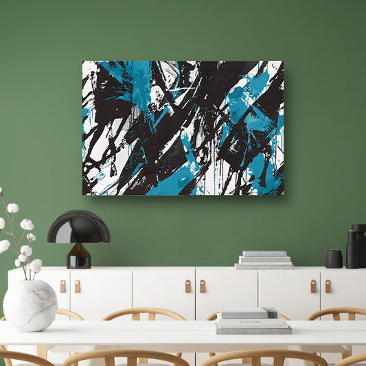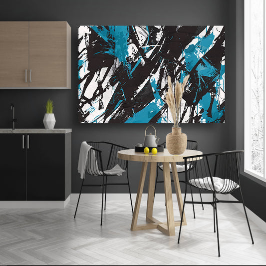 Abstracte dynamiek in zwart, wit en blauw canvas