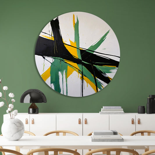 Abstracte dynamiek in zwart, wit en geel forex muurcirkel