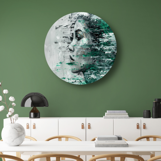 Abstracte Emotie in Groen en Zwart aluminium muurcirkel