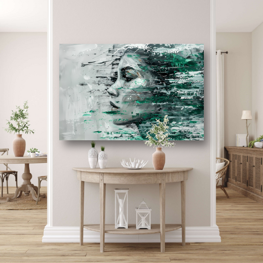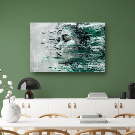 Abstracte Emotie in Groen en Zwart canvas met baklijst