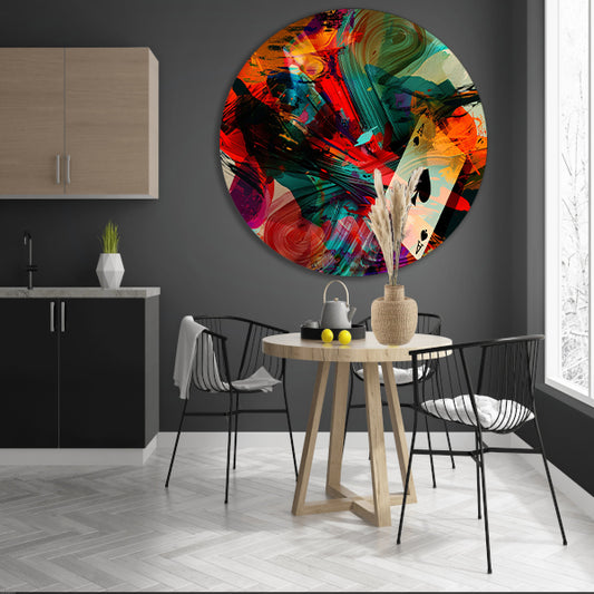 Abstracte energie-uitbarsting in levendige kleuren aluminium muurcirkel