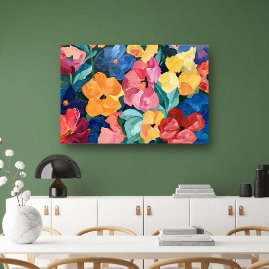 Abstracte explosie van kleurrijke bloemen en bladeren canvas met baklijst