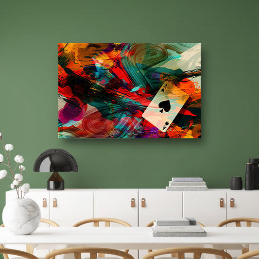 Abstracte explosie met zwevende speelkaartposter
