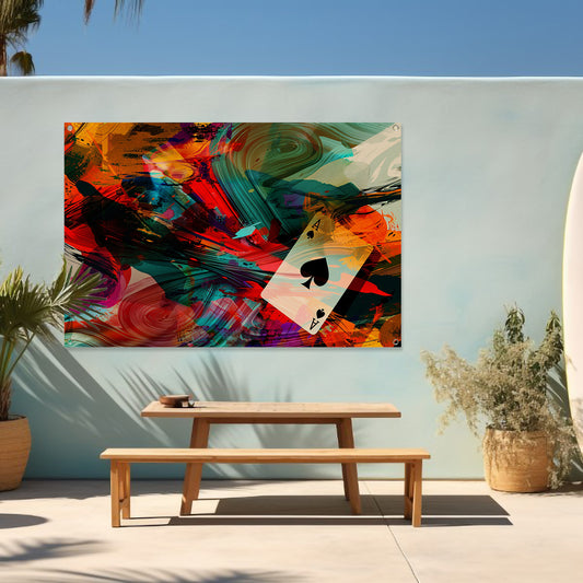 Abstracte explosie met zwevende speelkaart tuinposter