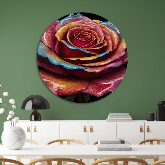 Abstracte explosie van kleurrijke rozenpracht aluminium muurcirkel