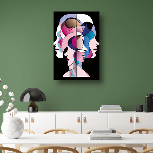 Abstracte gelaagde gezichten in felle kleuren canvas
