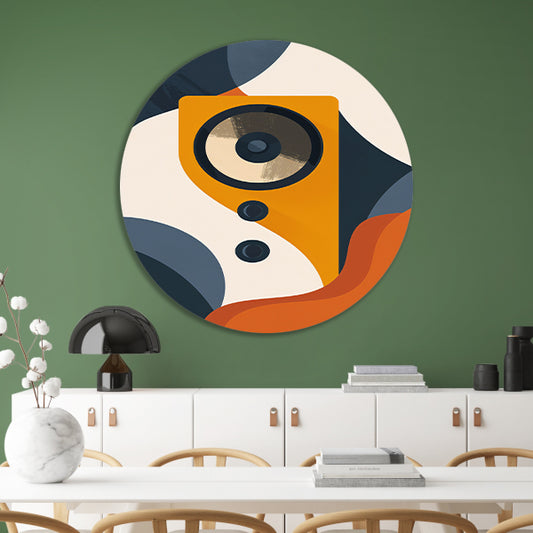 Abstracte Gele Luidspreker met Vormen aluminium muurcirkel