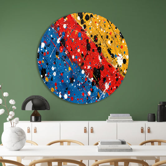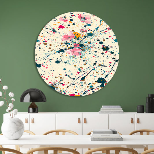 Abstract bloemenzee met Kleurrijk verfspatten aluminium muurcirkel