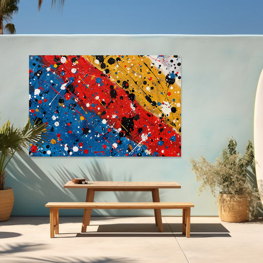 Abstract bloemenzee met Kleurrijk verfspatten canvas met baklijst