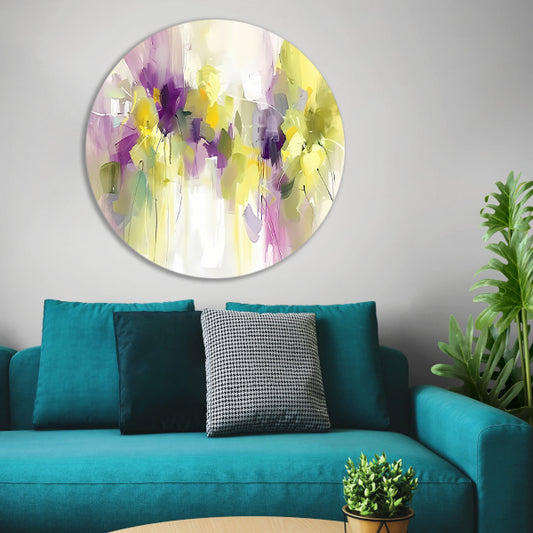 Abstract bloemenveld schilderij met levendige kleuren forex muurcirkel