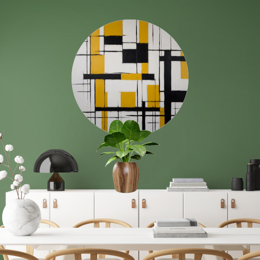 Abstracte Geometrische Balans in Geel en Zwart forex muurcirkel