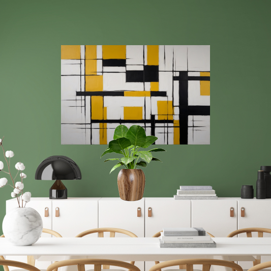 Abstracte Geometrische Balans in Geel en Zwart poster
