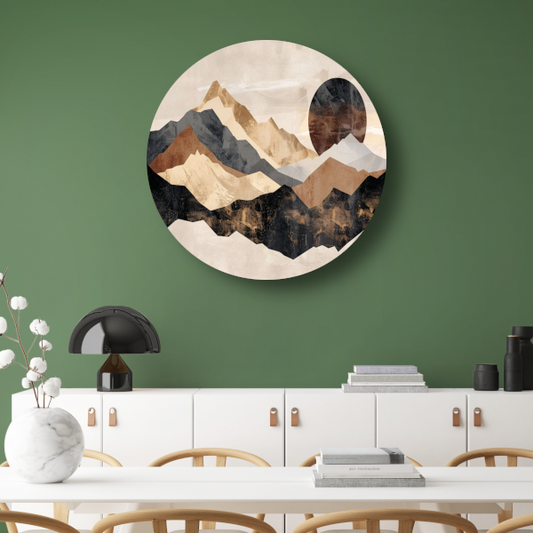 Abstracte Geometrische Bergen in Sepia aluminium muurcirkel