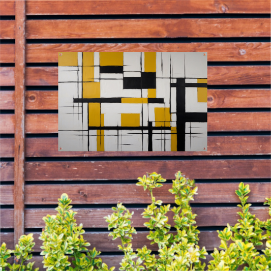 Abstracte Geometrische Balans in Geel en Zwart tuinposter