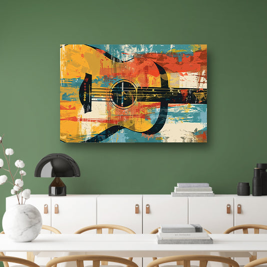 Abstracte gitaar kunst met levendige spatten canvas met baklijst