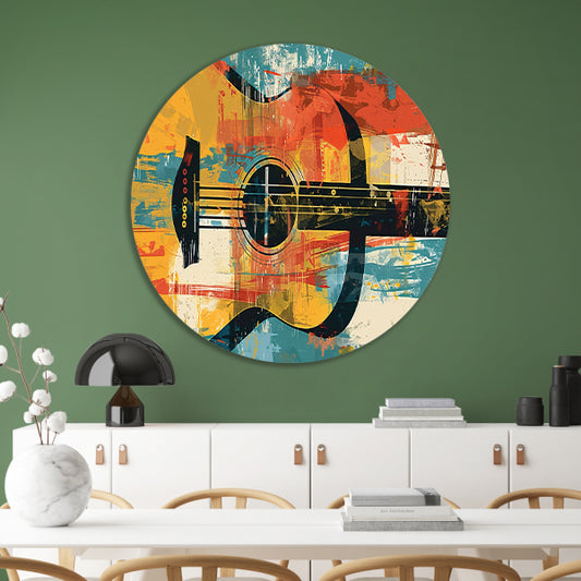 Abstracte gitaar in levendige kleuren aluminium muurcirkel