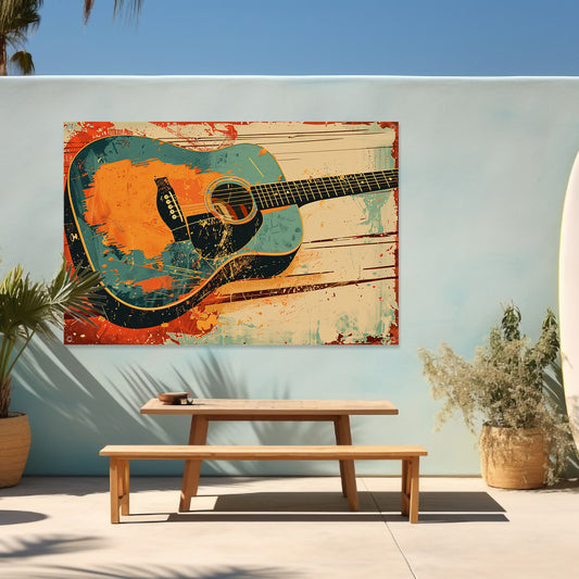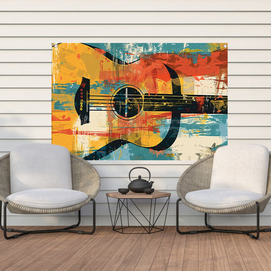 Abstracte gitaar kunst met levendige spatten tuinposter