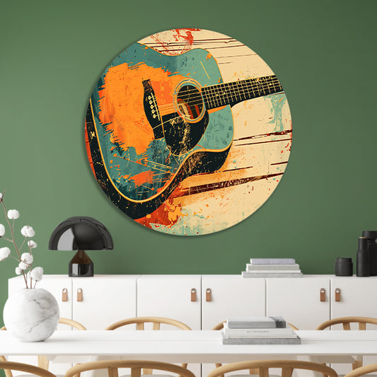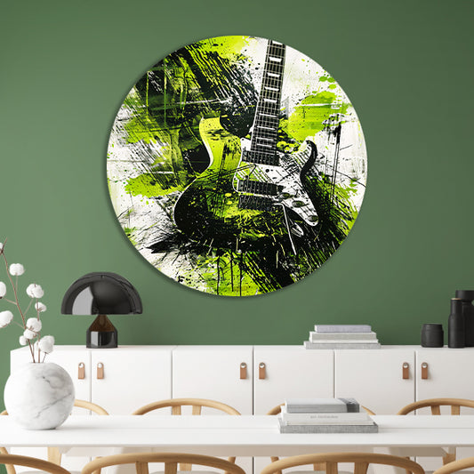Abstracte gitaar kunst met levendige spatten aluminium muurcirkel