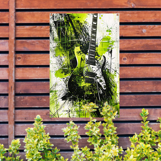Abstracte gitaar met dynamische verfspatten tuinposter