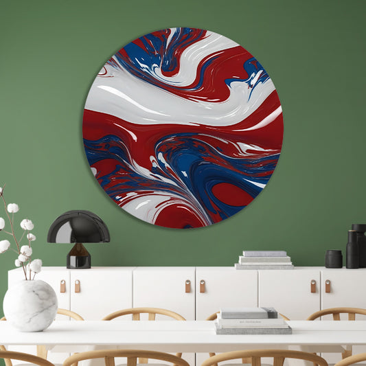 Abstracte Golf van Rood, Wit en Blauw aluminium muurcirkel