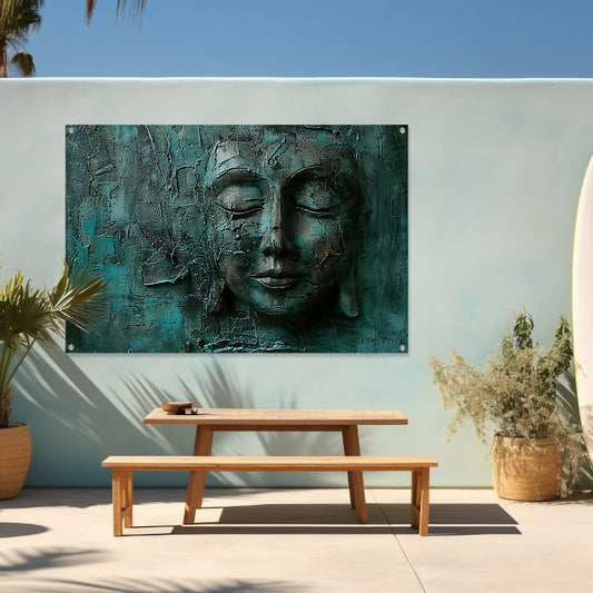 Abstract boeddha schilderij met rijke textuur tuinposter