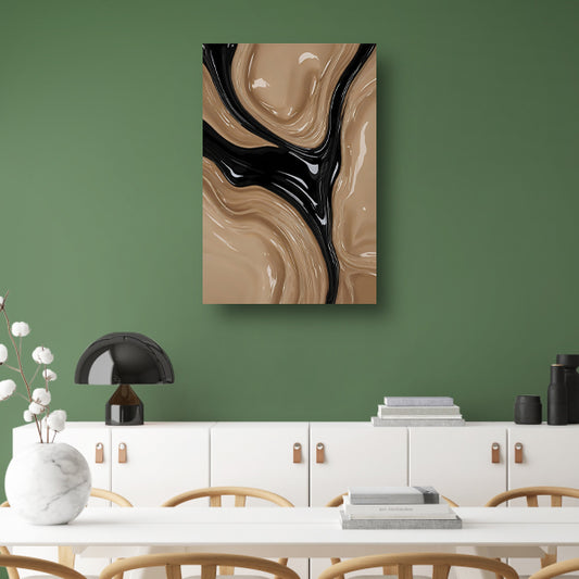 Abstracte Golvende Vormen in Beige en Zwart canvas met baklijst
