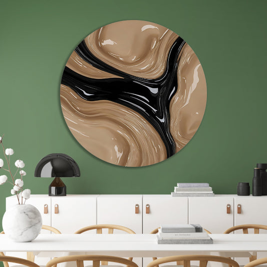 Abstracte Golvende Vormen in Beige en Zwart aluminium muurcirkel