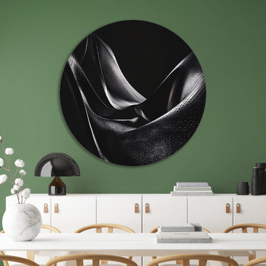 Abstracte golvende vormen in monochrome tinten aluminium muurcirkel
