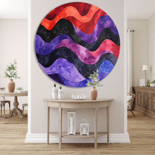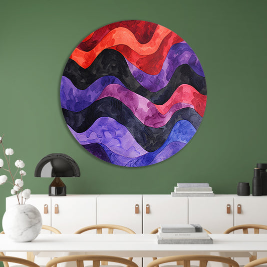 Abstracte golvende lijnen in levendige kleuren aluminium muurcirkel
