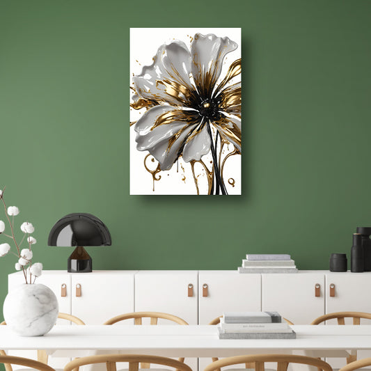 Abstracte Gouden Bloem op Wit canvas met baklijst