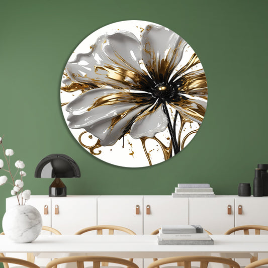 Abstracte Gouden Bloem op Wit aluminium muurcirkel