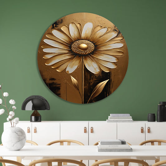 Abstracte Gouden Bloem op Sepia Achtergrond aluminium muurcirkel
