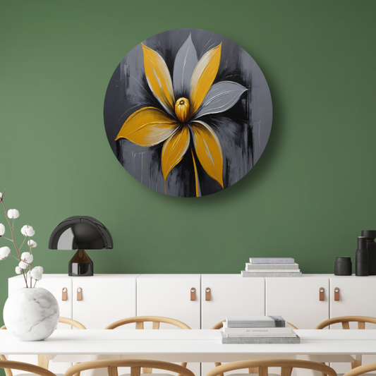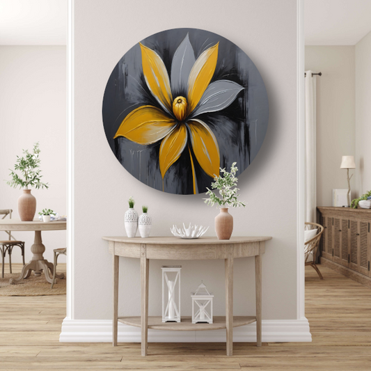 Abstracte Gouden Bloem op Zwart aluminium muurcirkel
