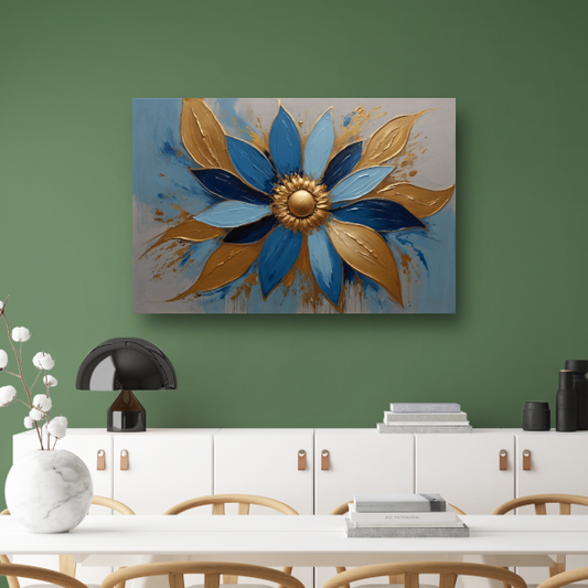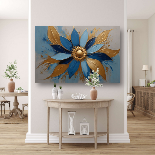 Abstracte Gouden Bloesem op Blauw canvas