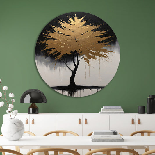 Abstracte Gouden Boom in Monochrome Reflectie aluminium muurcirkel