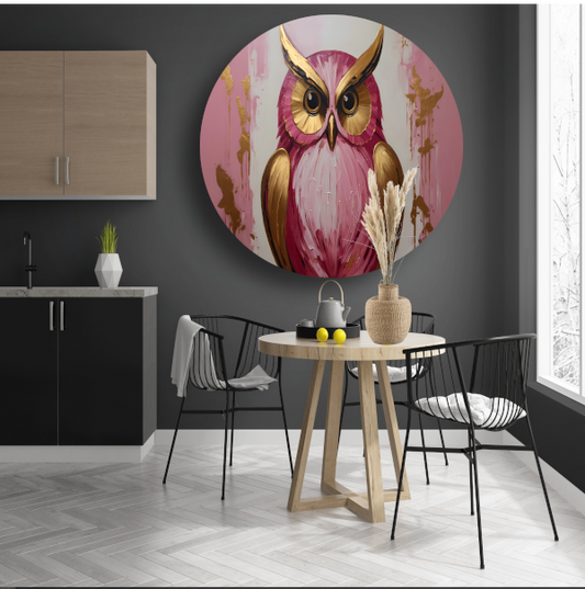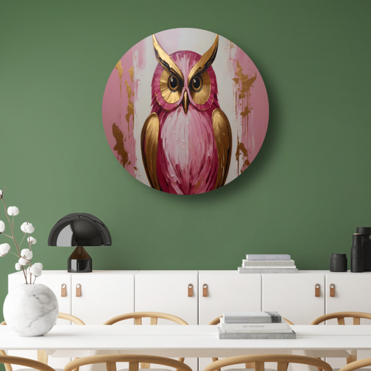 Abstracte gouden en roze uil schilderij forex muurcirkel