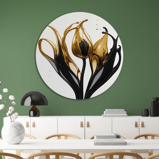 Abstracte Gouden en Zwarte Tulpen Silhouet forex muurcirkel