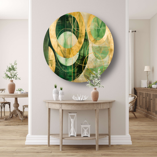 Abstracte gouden en groene geometrie aluminium muurcirkel