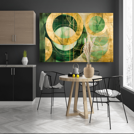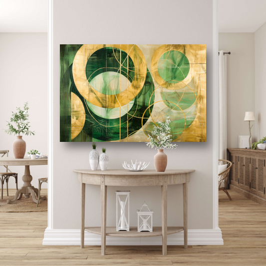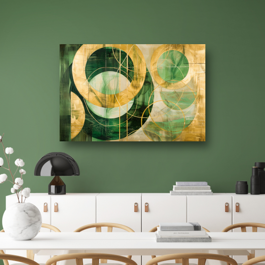 Abstracte gouden en groene geometrie canvas met baklijst