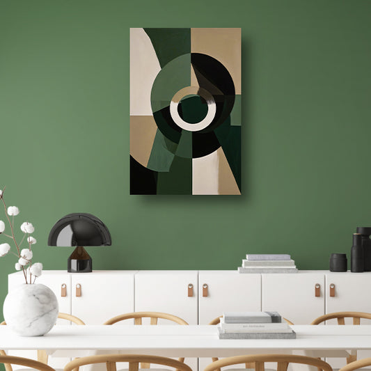 Abstracte Groen-Zwarte Vormen op Beige Achtergrond canvas