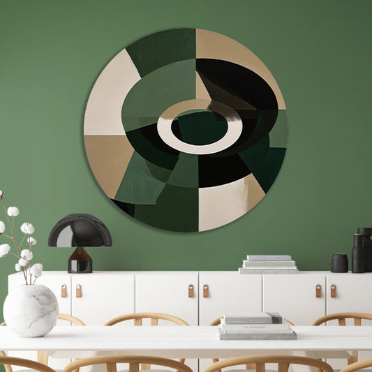 Abstracte Groen-Zwarte Vormen op Beige Achtergrond aluminium muurcirkel