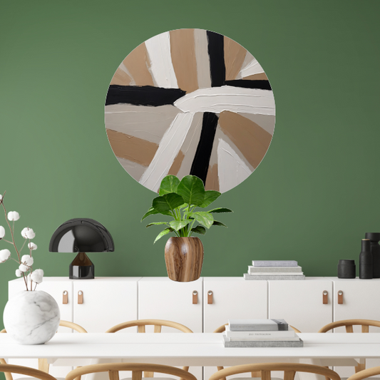Abstracte Harmonie in Beige, Zwart en Wit forex muurcirkel