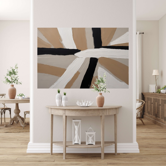 Abstracte Harmonie in Beige, Zwart en Wit canvas