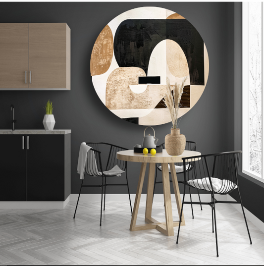 Abstracte Harmonie in Zwart, Beige en Goud forex muurcirkel