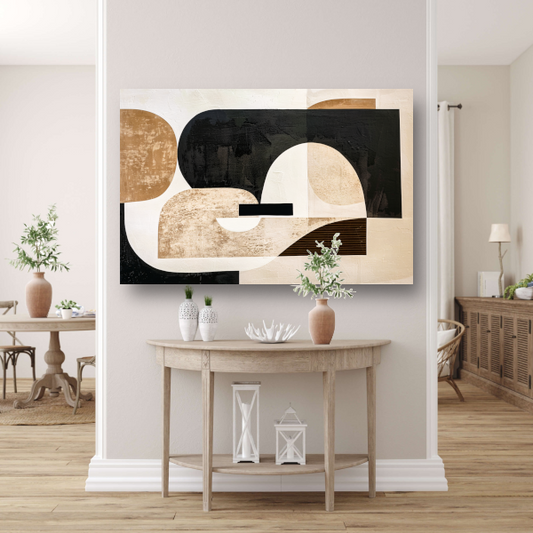 Abstracte Harmonie in Zwart, Beige en Goud poster