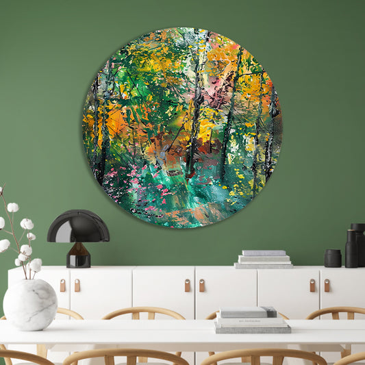 Abstracte Herfst in Kleurrijk Boslandschap aluminium muurcirkel