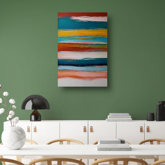 Abstracte horizon in rood, geel en blauw canvas