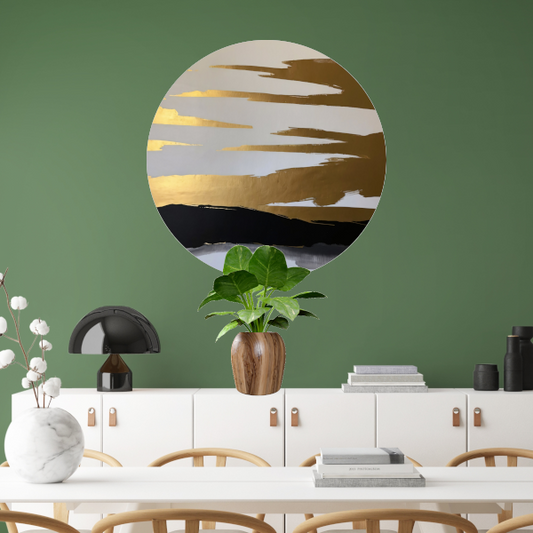 Abstracte Horizon in Goud en Zwart aluminium muurcirkel