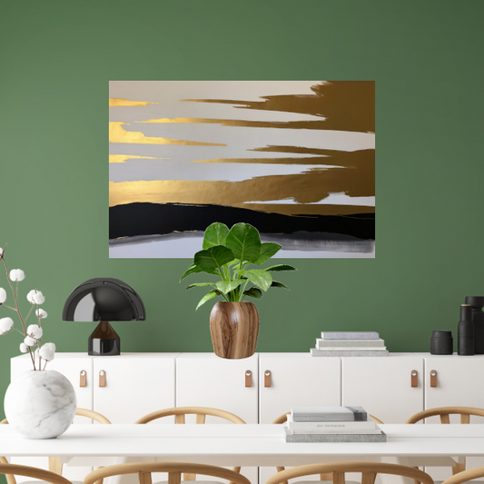 Abstracte Horizon in Goud en Zwart poster
