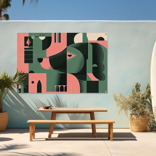 Abstracte hond in geometrische stijl met neutrale kleuren tuinposter